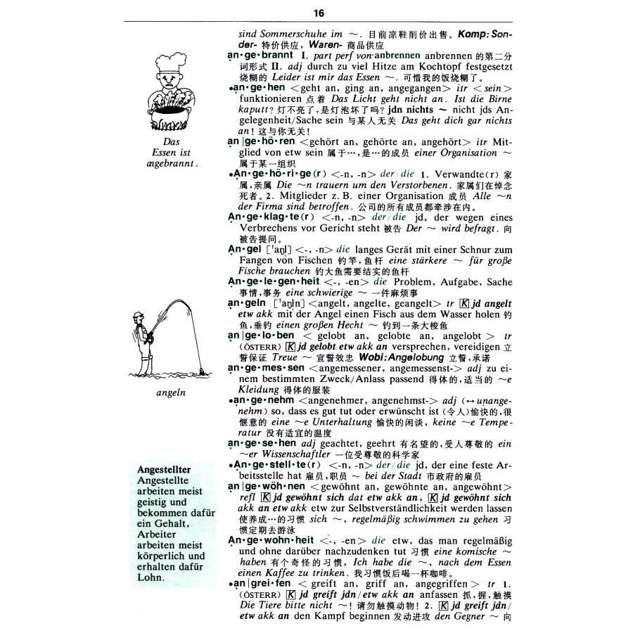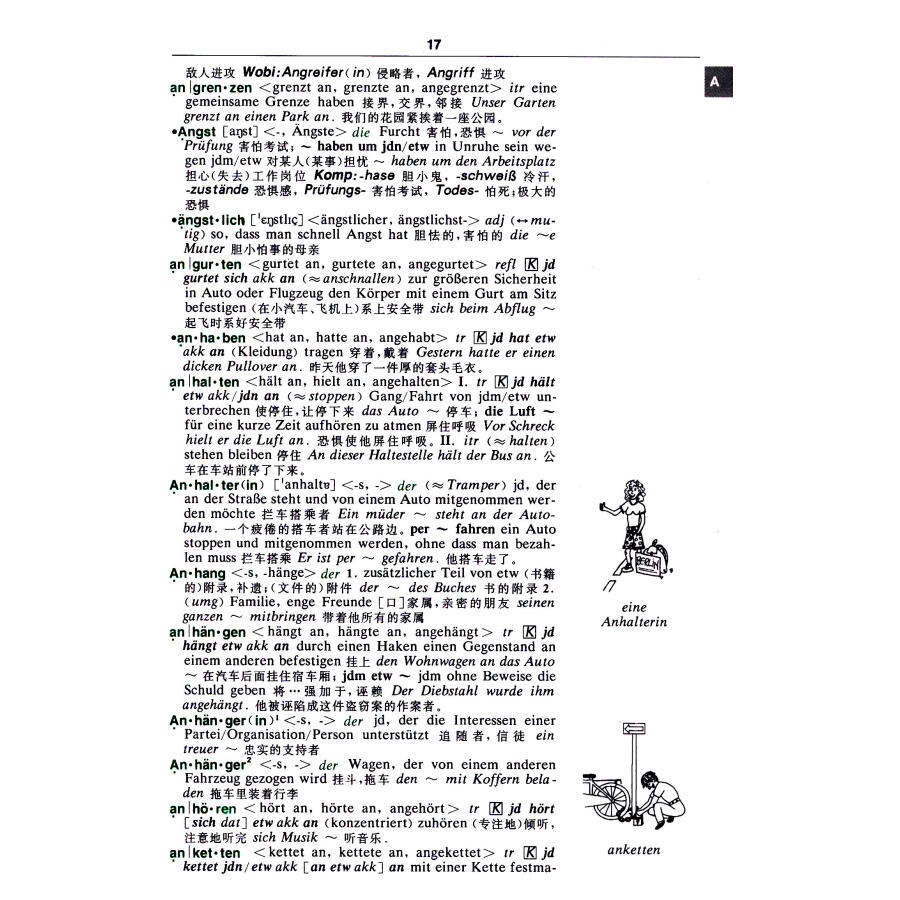 《德汉双解德语学习词典》对词目的解释简单易懂,并加以具体的例句解释说明词目的正确用法;同时,保留了原有的德语释义――德汉双解――有利于学习者对比学习,更准确地掌握词汇。其中,400多条词目附有插图,直观形象,大大有助于学习者对单词的理解与记忆。尤其值得一提的是,本词典在一些重要的词目之后编排了与构词法相关的内容,使学习者能够举一反三,不仅学习到新的单词,更能掌握一种科学的学习方法。例如,给出常用动词的名词形式,精选安插了复合词。